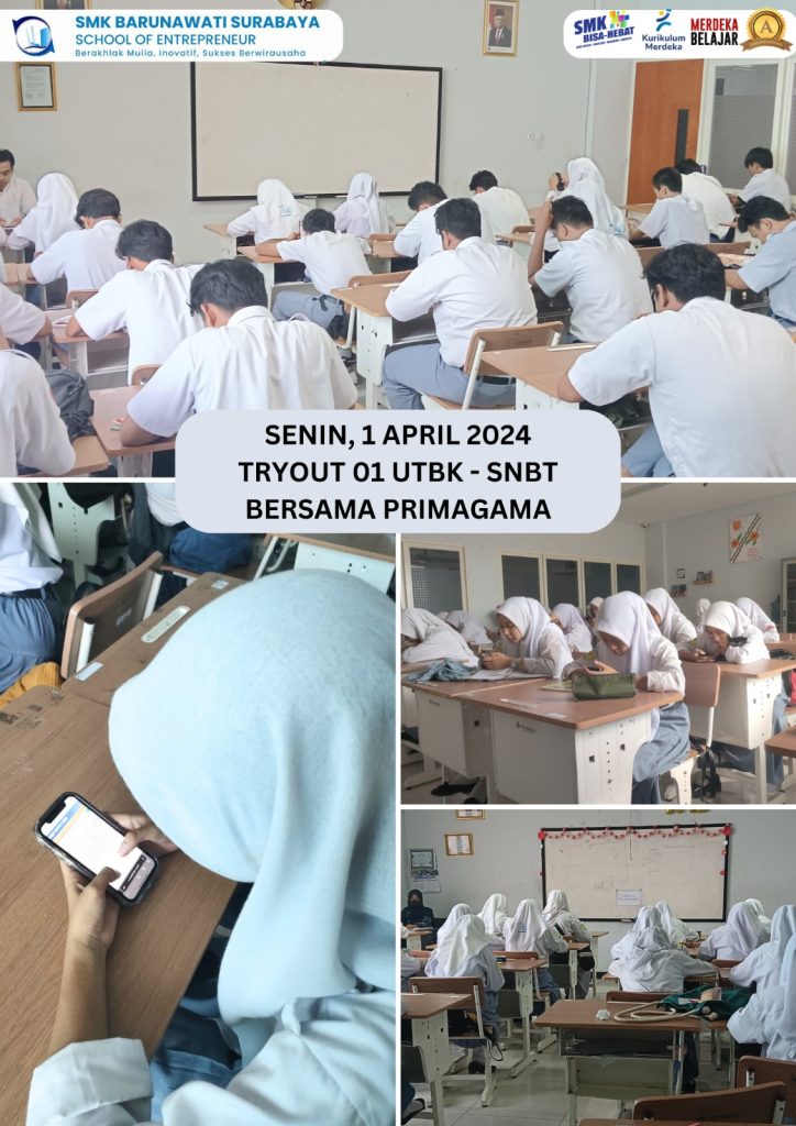 Surabaya, 1 April 2024 – Sebanyak 60 siswa kelas XII SMK Barunawati Surabaya mengikuti tryout UTBK-SNBT yang diselenggarakan oleh Primagama pada hari Senin, 1 April 2024. Kegiatan ini bertujuan untuk memberikan gambaran kepada para siswa tentang format dan tingkat kesulitan soal UTBK-SNBT, serta membantu mereka dalam memantapkan persiapan diri untuk menghadapi tes tersebut.