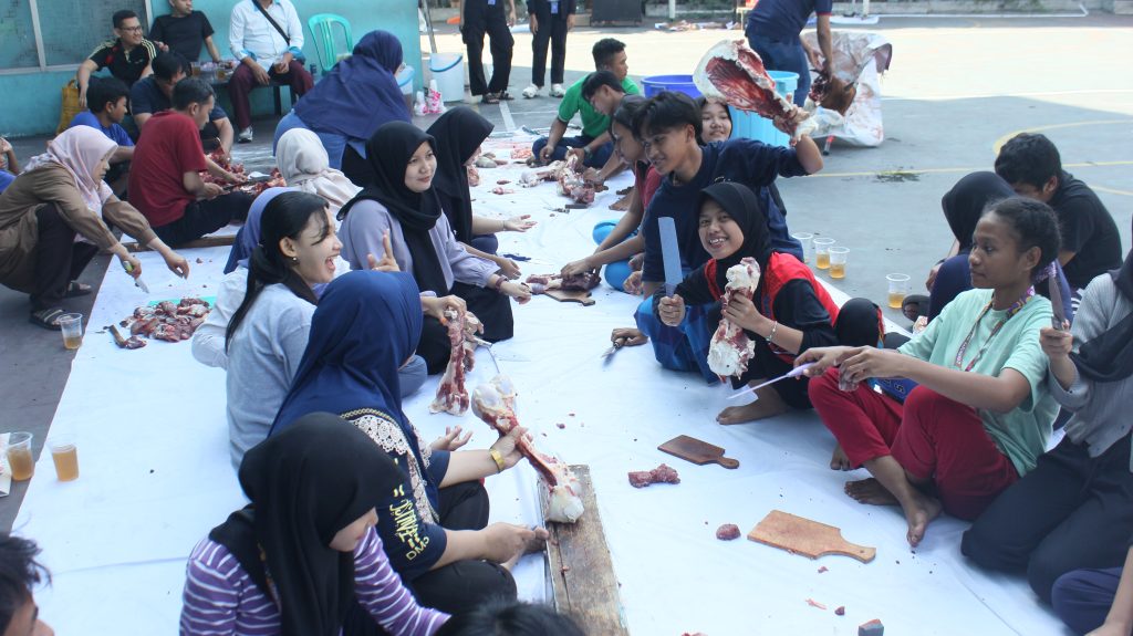 Proses penyembelihan, pemotongan, hingga pendistribusian daging kurban dilaksanakan secara bergotong royong dengan melibatkan pengurus OSIS dan guru. Daging kurban yang dihasilkan tidak hanya dibagikan kepada siswa SMK, tetapi juga diberikan kepada tenaga kebersihan, satpam, petugas UKS, tukang kebun, serta warga sekitar lingkungan sekolah.